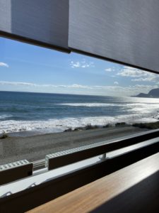 念願の海が見えるテラス席です